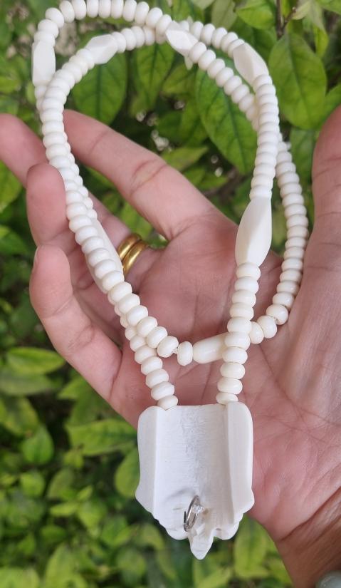สร้อยคอคล้องพระกระดูกนกกระจอกเทศแกะทรงเครื่อง ขนาดความยาว 24 นิ้วสวมหัวได้(ของใหม่)ตัวจบแคปซูลหมุนออกได้