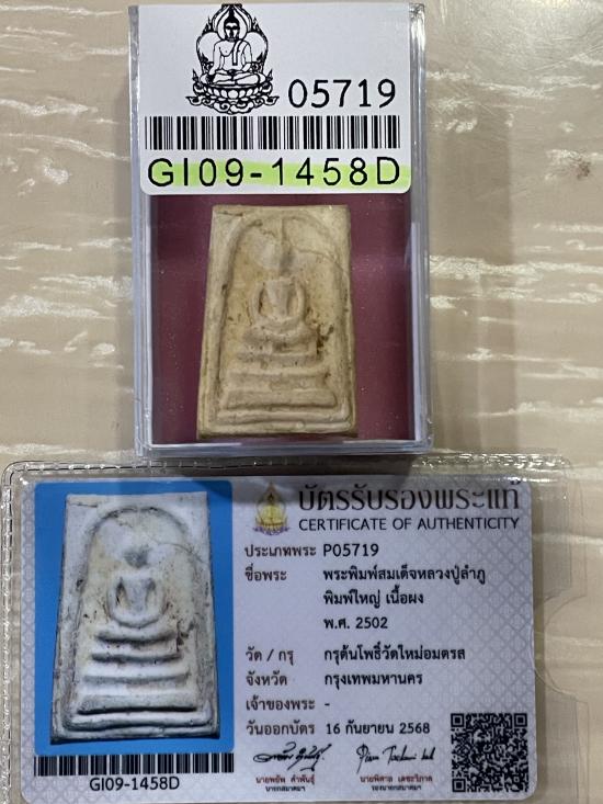 (เคาะแดง4900) +บัตรสมาคม สมเด็จพิมพ์ใหญ่ หลวงปู่ลำภู ลงกรุต้นโพธิ์