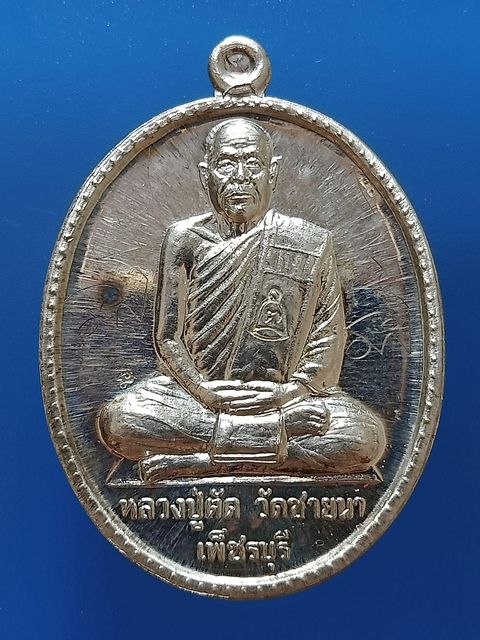 เหรียญฉลองอายุครบ 75 ปี หลวงพ่อตัด วัดชายนา ปี 49 เนื้อเงินหลังยันต์ (สร้าง 499 เหรียญ) ผิวเดิมๆ เคาะเดียวแดงครับ