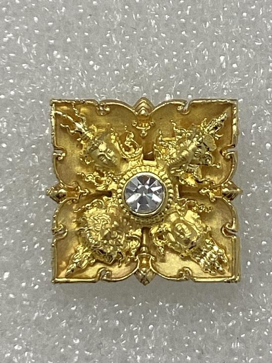 มหาเทพเทวศิลป์ จตุรเทพอริยทรัพย์ พระอาจารย์อรรณพ(อาจารย์เล็ก) วัดถ้ำเขาน้อย จ.เพชรบุรี เนื้อสัมฤทธิ์ชุบทอง พิมพ์เล็ก ขนาด 1.5 ซ.ม. กล่องเดิม |