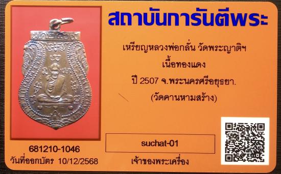 เหรียญหลวงพ่อกลั่น วัดพระญาติฯ เนื้อทองแดง ปี 2507 จ.พระนครศีอยุธยา วัดคานหามสร้าง |