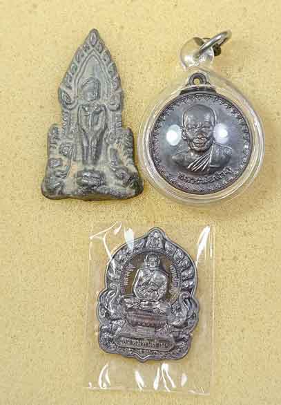 พระหล่อโบราณ เนื้อตะกั่วปางป่าเลไลย์ (สภาพตามรูป) + เหรียญหลวงพ่อลำภู ปี21 วัดไก่จ้น อ.ท่าเรือ จ.อยุธยา