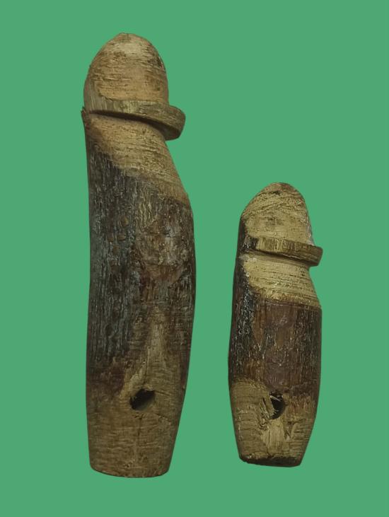 ปลัดขิกหลวงปู่เมฆ วัดลำกระดาน มีนบุรี กทม ไม้เขยตาย มี 2 ดอก ขนาด 3 นิ้ว และ ขนาด 1 นิ้ว จุ่มเทียนในพิธี สวยครับ |