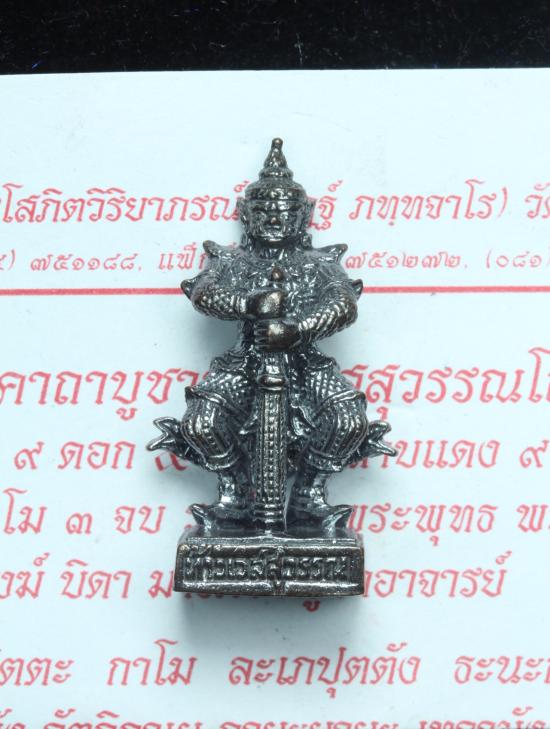 ** วัดใจ **รูปหล่อท้าวเวสสุวรรณ พิมพ์หน้ายักษ์ หลวงพ่ออิฏฐ์ วัดจุฬามณี เนื้อรมดำ ปี 2558 สมุทรสงคราม สภาพสวยเดิมๆไม่ผ่านการใช้ พร้อมใบคาถา//