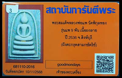 สมเด็จแพ 9 พัน เนื้อลายฝั่งตะกรุด ปี2536 หลวงพ่อแพ วัดพิกุลทอง สิงห์บุรี