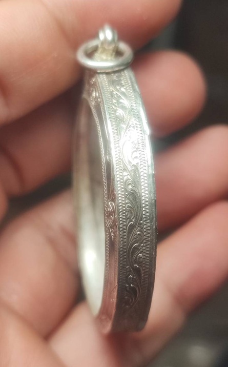 ชื่อพระเครื่อง วัดใจกรอบเงินมือสอง ใส่เหรียญไข่ใหญ่ สภาพสวย ไม่มีฉีกขาด ขนาดกว้าง 3.0 สูง 3.7 เซนติเมตร