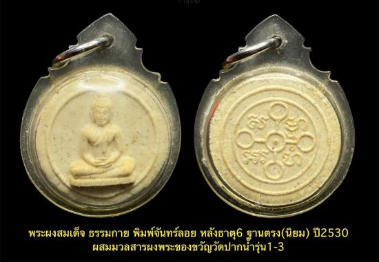 พระผงสมเด็จ ธรรมกาย พิมพ์จันทร์ลอย หลังธาตุ 6 ฐานตรง(นิยม) ปี2530 ผสมมวลสารผงพระของขวัญวัดปากน้ำรุ่น 1-3 เคาะเดียว