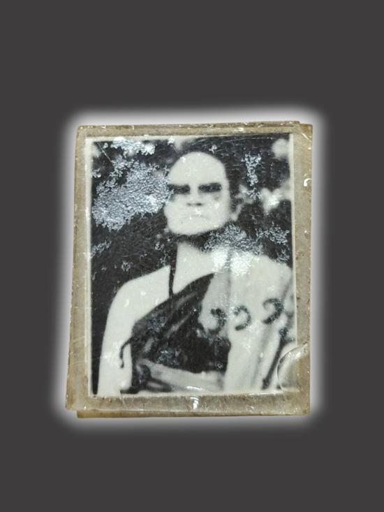A5245.รูปถ่ายอัดกระจก ไม่ทราบพระเกจิ เคาะเดียวเเดง