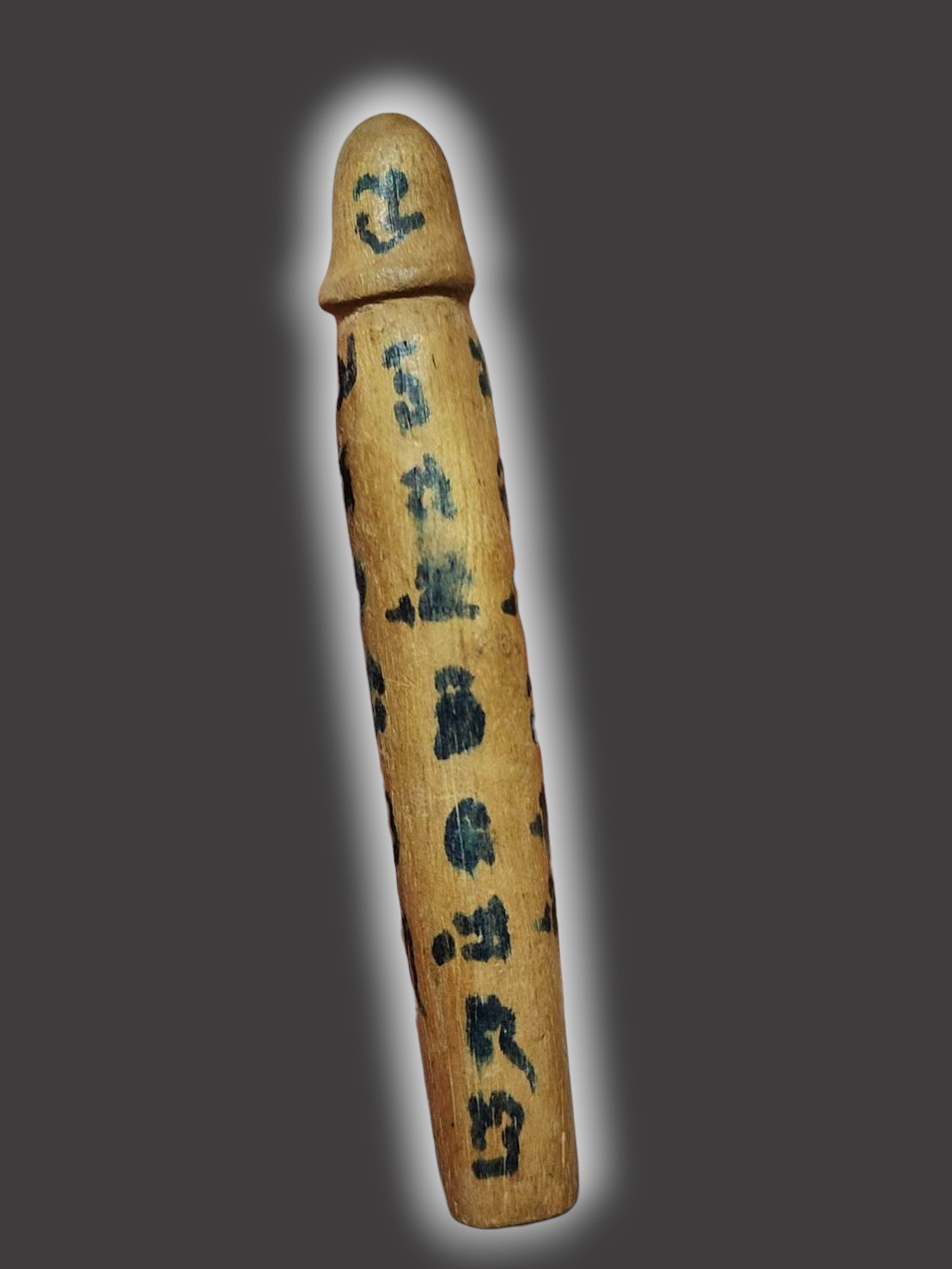 A5247.ปลักขิก ไม้เเกะ จารย์ยันต์ ไม่ทราบที่ เคาะเดียวเเดง