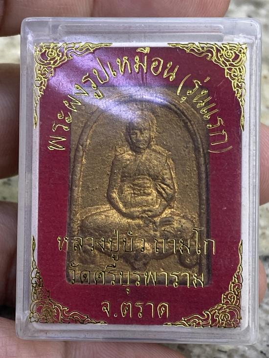 พระผงรูปเหมือน รุ่นแรก หลวงปู่บัว ถามโก (พระครูสังฆกิจบูรพา) วัดศรีบูรพาราม จ.ตราด ฝังพลอย ทาทอง สร้างน้อย บล็อกเลื่อน เลขสวย 289 กล่อง