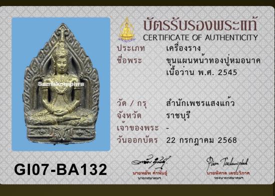ขุนแผนหน้าทอง หมอนาค เพชรแสงแก้ว เนื้อว่าน ปี 2545 พร้อมบัตรรับรองสมาคม