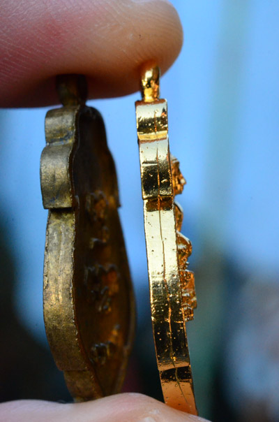เหรียญหล่อ หลวงพ่อวัดไร่ขิง จ.นครปฐม ก้นแมงดา รุ่นพิเศษ ปี2539 เนื้อทองระฆัง 2องค์ สวยครับ |