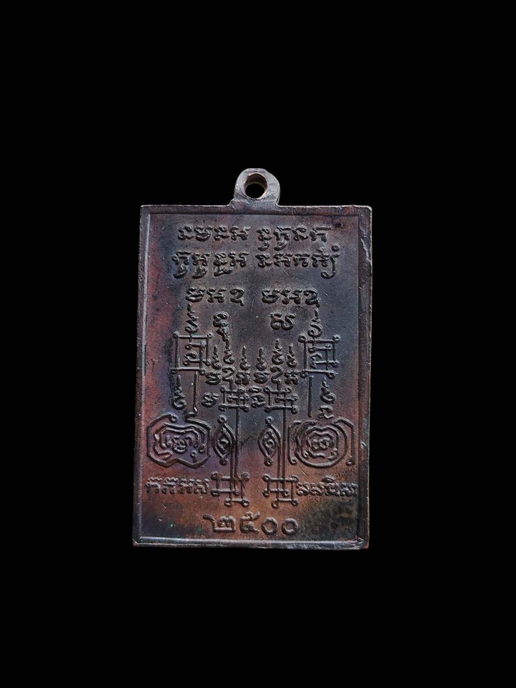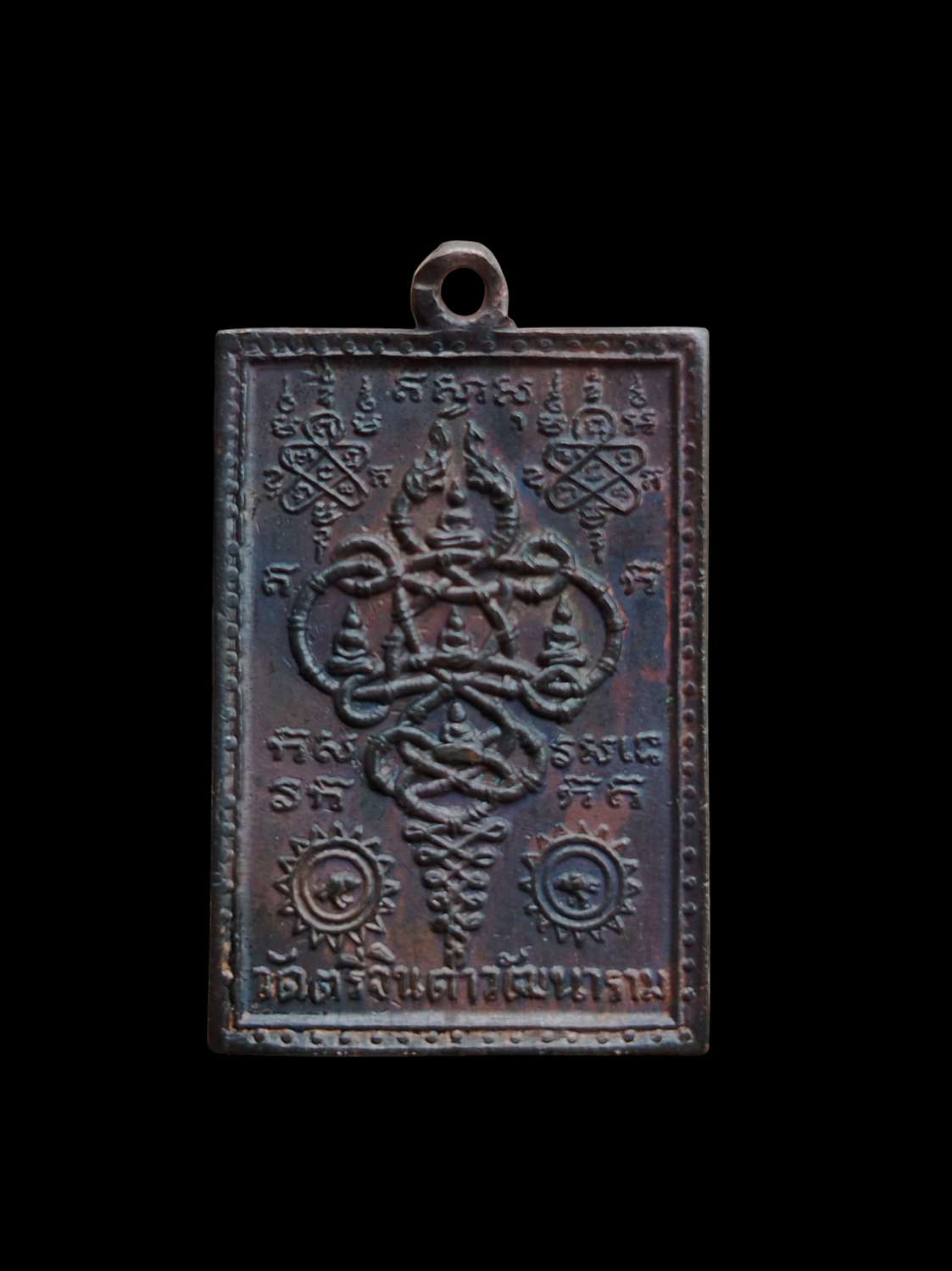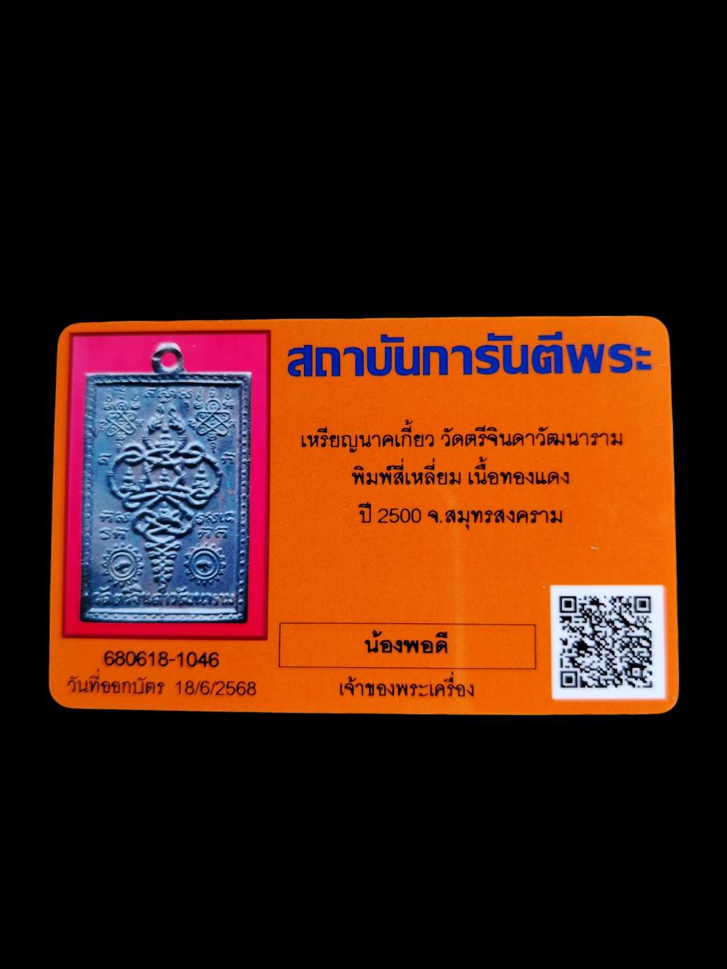 เหรียญนาคเกี้ยว วัดตรีจินดา พิมพ์เหลี่ยม แจกผู้ชาย เนื้อทองแดง ปี 2500 มาพร้อมบัตรรับรอง