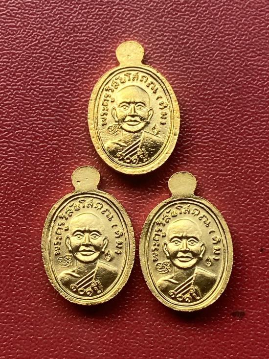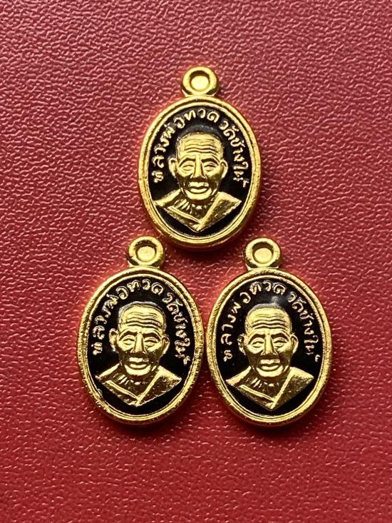 เคาะเดียวแดง เม็ดแตง 3องค์หลวงปู่ทวด รุ่น101ปี เนื้อ ชุบทองลงยาดำ