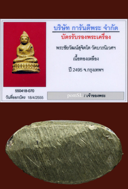 พระชัยวัฒน์ สุจิตโต วัดบวรนิเวศวิหาร ปี 2495 พิมพ์สมาธิ สวยเดิมๆ มาพร้อมบัตร G ครับ