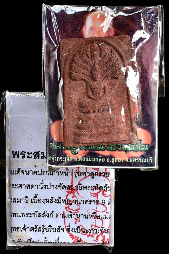 *** เคาะเดียวแดง ทุกรายการ *** พระสมเด็จนาคปรก รุ่นแรก เนื้อผงว่านสบู่เลือด หลังฝังเกศา + ฝังตะกรุดทองแดง หลวงปู่นิเวศน์ วัดทุ่งกระเจ็ด สุพรรณบุรี ปี 2552 มีซองจากวัด สภาพตามรูป (No.2)