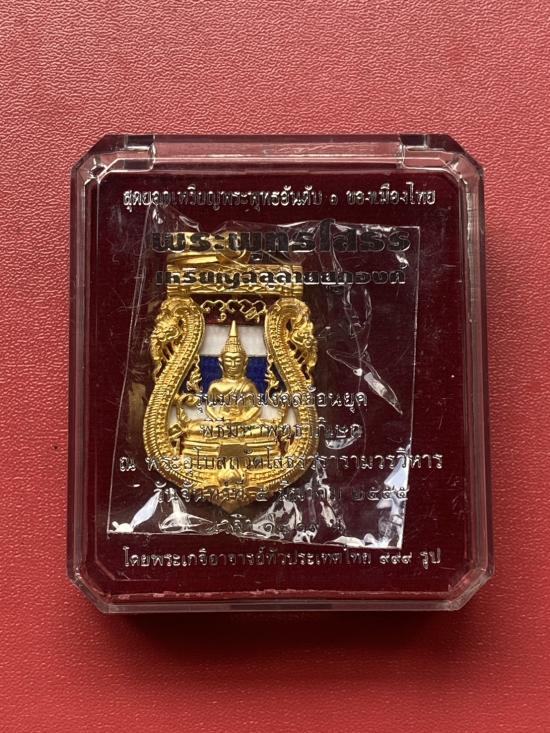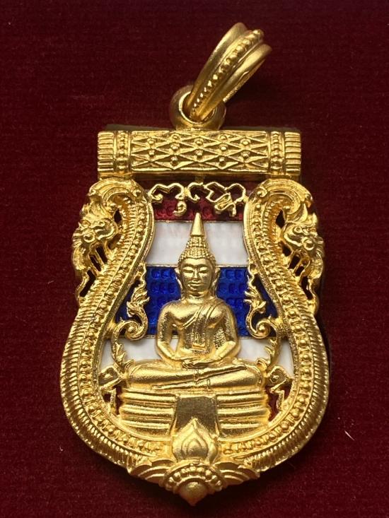 เคาะเดียวแดง เหรียญเสมาหลวงพ่อโสธร รุ่นมหามงคลย้อนยุค เลข 2345 เนื้อ ชุบทองลงยาธงชาติ
