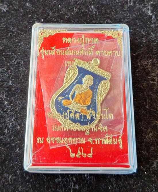 วัดใจ หลวงปู่ทวด หลวงปู่ศิลา เมตตาอธิษฐานจิต รุ่นเลื่อนสมณศักดิ์ เหนือดวง เนื้อทองทิพย์ ลงยา No.44 |