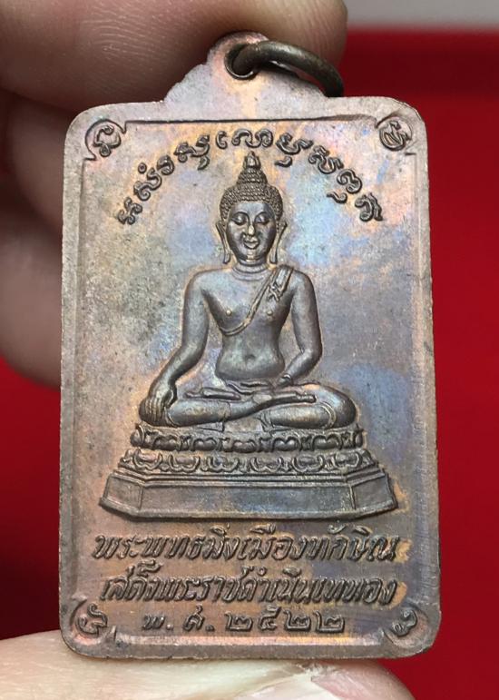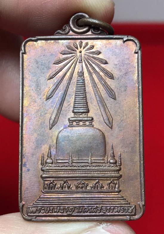 เหรียญพระบรมธาตุนครศรีธรรมราช หลังพระพุทธมิ่งเมืองทักษิณ ในหลวงร.9 เสด็จพระราชดำเนินเททอง ปี 22 เนื้อทองแดงออกรุ้ง (พล.ต.ต. ขุนพันธ์รักษ์ราชเดช เป็นเจ้าพิธี) |