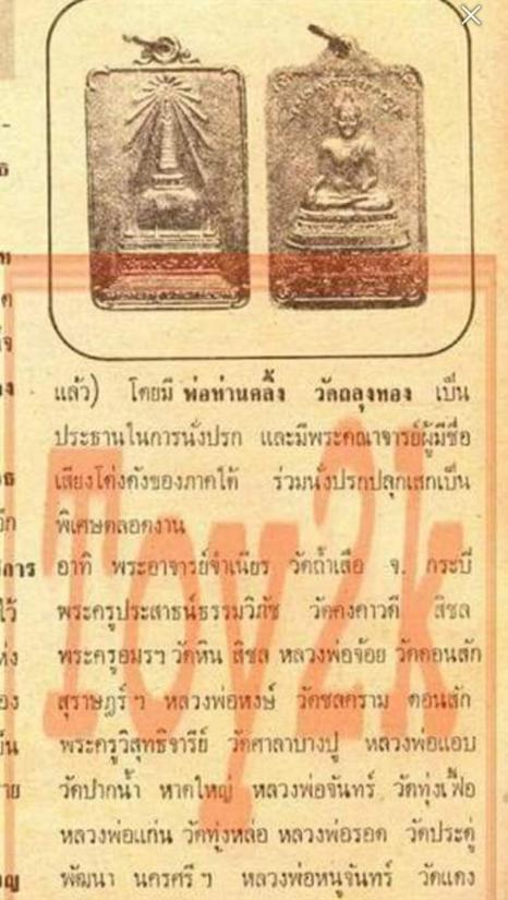- พ่อท่านคลิ้ง วัดถลุงทอง เป็นประธานนั่งปรก ดำเนินการทางพิธีโบราณาจารย์ทุกประการ รายนามพระเกจิอาจารย์ที่มีชื่อเสียงสายใต้ร่วมกันปลุกเสกหลายท่าน อาทิเช่น