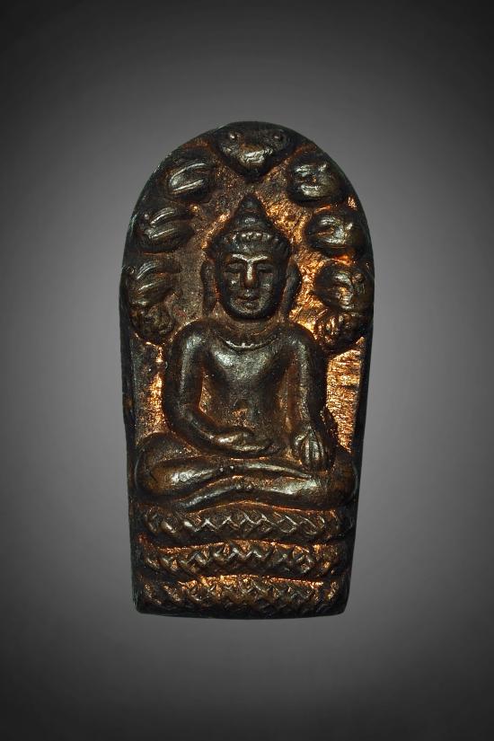 พระนาคปรก หลังเรียบ เนื้อทองแดงผิวไฟ สวยเดิมๆไม่ทราบที่คับ |