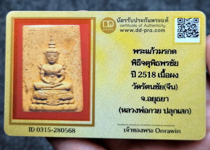 พระแก้วมรกต เนื้อผง พิธีจตุรพิธพรชัย วัดรัตนชัย(จีน) จ.อยุธยา ปี 2518 *หลวงพ่อกวย *หลวงปู่ดู่ *ร่วมปลุกเสก