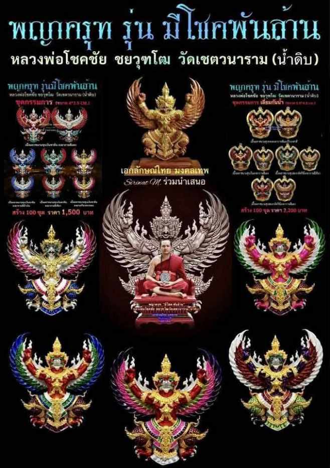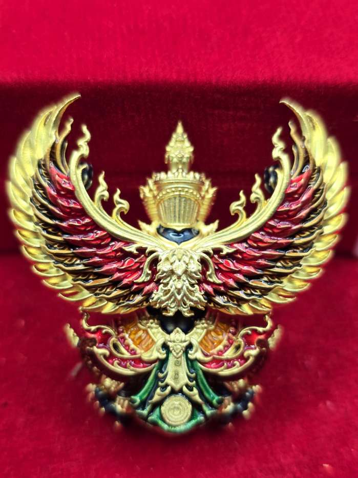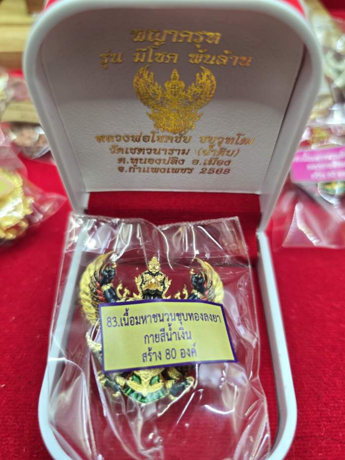 พญาครุฑ รุ่นมีโชคพันล้าน หลวงพ่อโชคชัย วัดน้ำดิบ เนื้อมหาชนวนชุบทองลงยากายน้ำเงิน สร้าง 80 องค์ หมายเลข 31