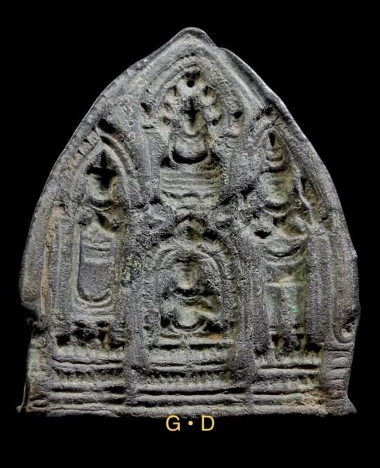 ชื่อพระเครื่อง แม่พิมพ์พระตรีกาย (พิมพ์มีพระแม่ธรณี) เนื้อสำริด ในยุคลพบุรี จัดสร้างช่วงพุทธศตวรรษที่ 16-18 ( อายุราว1,000 ปี)+++พร้อมบัตรรับรองฯ
