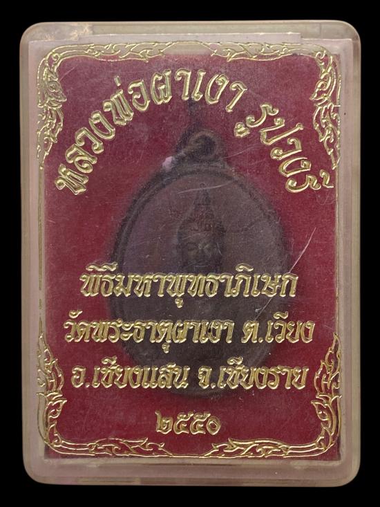 P166 หลวงพ่อผาเงา รูปวงรี พิธีมหาพุทธาภิเษก วัดพระธาตุผาเงา ต.เวียง อ.เชียงแสน จ.เชียงราย 2550 กล่องเดิม (เคราะเดียวแดง) |