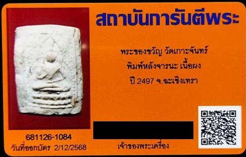พระผงของขวัญ วัดเกาะจันทร์ ปี2497 จ.ฉะเชิงเทรา หลวงพ่อสด วัดปากน้ำ มวลสารและเนื้อเดียวกันกับวัดปากน้ำ สวยๆ + บัตรรับรอง GPRA