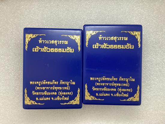 ท้าวเวสสุวรรณ เจ้าสัวธรรมชัย พระอาจารย์ภัทรญาโณ ภิกขุ วัดธรรมชัยมงคล (ทุ่งละคร) จ.เชียงใหม่ สูง 2.3 ซ.ม. เนื้อทองแดงซาติน กล่องเดิม ( 2 องค์ ) |