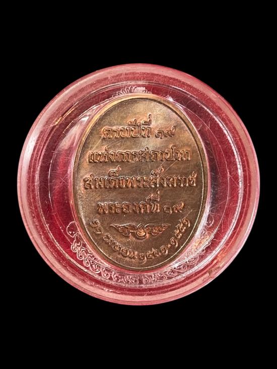 เหรียญสมเด็จญาณสังวร ครบรอบปีที่19 แห่งการสถาปนาสมเด็จพระสังฆราช องค์ที่19 วัดบวรนิเวศ ปี2551 เนื้อทองแดง พร้อมตลับเดิมๆจากวัด |