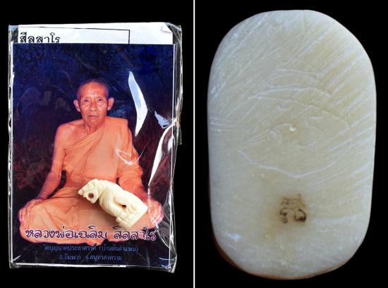 พญาเสือเจ้าพยัคฆ์ตัวจ่าฝูง (มหาอำนาจ มหาปราบ) เนื้อกระดูกแกะ ใต้ฐานหลวงปู่จารยันต์กำกับไว้ทุกตัว สร้าง 189 ตัว ปี 2551 หลวงปู่เฉลิม วัดบุญนาคประชาสรรค์ จ.สมุทรสงคราม พร้อมซองรูปใบฝอยเดิมจากวัด สภาพพระตามรูปที่ลงทุกประการ (ขนาดประมาณ 2.4 x 1.2 ซม.)