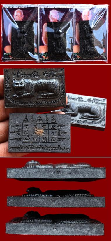 ชุด 3 องค์...เสือนอนกินทรัพย์สินพูนทวี เนื้อดำผงตรีนิสิงเหคลุกน้ำมันเสือ หลังโรยขนเสือ ปี 2551 หลวงปู่นิเวศน์ วัดทุ่งกระเจ็ด จ.สุพรรณบุรี พร้อมซองรูปใบฝอยเดิมจากวัด |