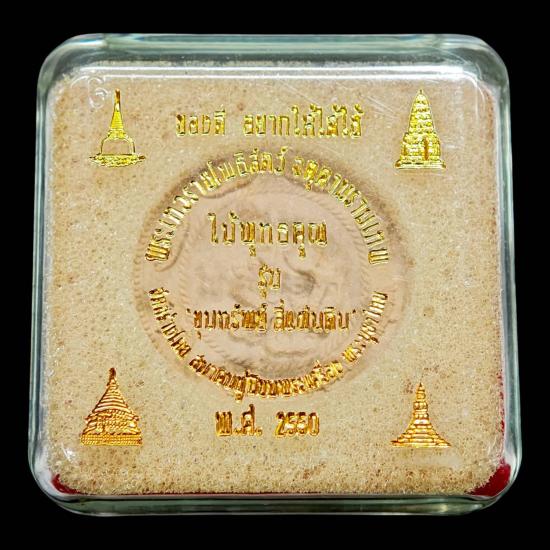 จตุคามรามเทพ เนื้อผงไม้พุทธคุณ รุ่นขุมทรัพย์สี่แผ่นดิน ปี2550 ขนาด 3.5 ซม. พร้อมกล่อง