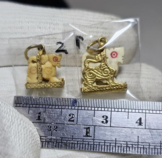 สิงห์สาริกา ตาแดง เลี่ยมกระเช้าเดิม หลวงพ่อหอม วัดซากหมาก 2 ตัว