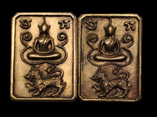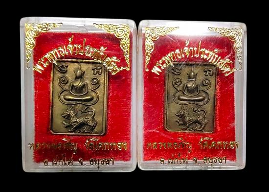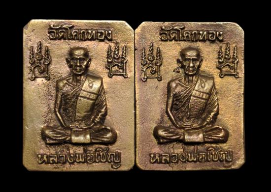 เหรียญหล่อ หลวงพ่อเชิญ วัดโคกทอง พิมพ์ประทับราชสีห์ ( สิงห์3) หลังรูปเหมือน ปี2534 เนื้อฝาบาตร จ.อยุธยา พร้อมกล่องเดิม ( จำนวน 2องค์) |