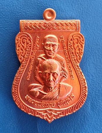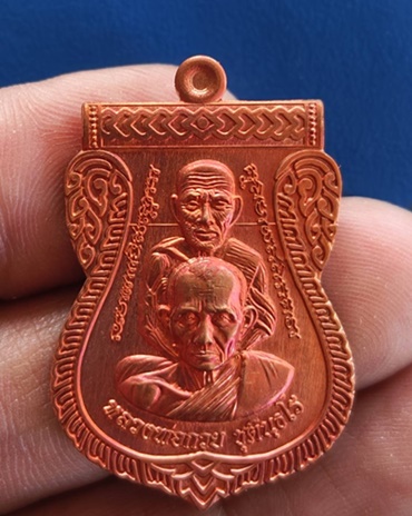 เหรียญพุทธซ้อนเหนือดวง เนื้อทองแดง ด้านหน้าหลวงปู่ทวดและหลวงพ่อกวย หลังท้าวเวสสุวรรณ โดยมีหลวงพ่อเล็ก วัดท่าขนุน ศิษย์หลวงพ่อฤาษีลิงดำ วัดท่าซุง อธิฐานจิต