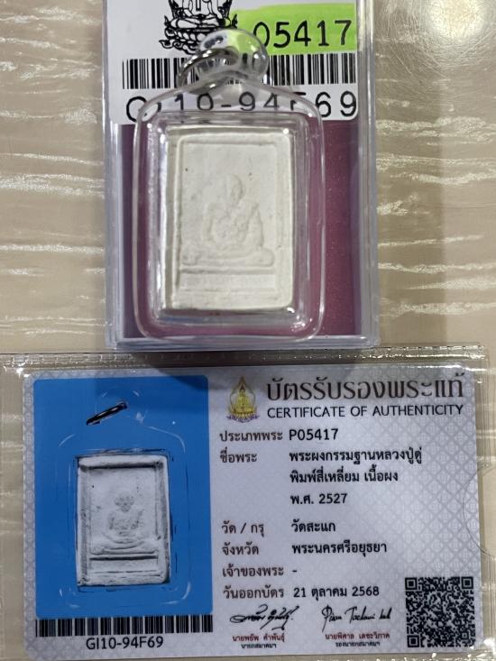 ด้านหลังติดจีวรหลวงปู่ดู่ อยุธยา มีหน้าตา สร้างปี 2527 รับประกันพระแท้ ดูง่าย สวยสมบูรณ์ไม่หักไม่ซ่อม พร้อมบัตรรับรองพระแท้จากท่าพระจันทร์ ขนาดห้อยคอ เหมาะกับไว้บูชาพร้อมกับสวดมนต์กับบทจักรพรรดิ์ของหลวงปู่