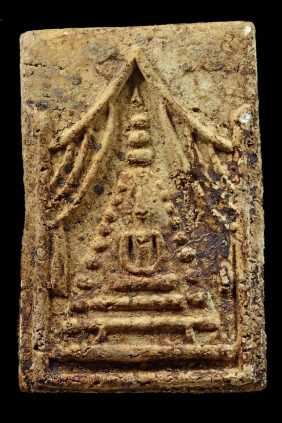 พระสมเด็จ "พิมพ์นั่งเจดีย์ แหวกม่าน" หลวงปู่นาค ยุคหลัง เนื้อผงพุทธคุณ มีคราบกรุ