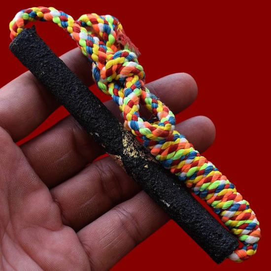 ( 2 ) ตะกรุดถักเชือก ลงรัก ปิดทอง ร้อยเชือกเจ็ดสี ทำบุญมาจำชื่อวัดที่สร้างไม่ได้ สภาพพระตามรูปที่ลงทุกประการ (ขนาดยาวประมาณ 5 นิ้ว)