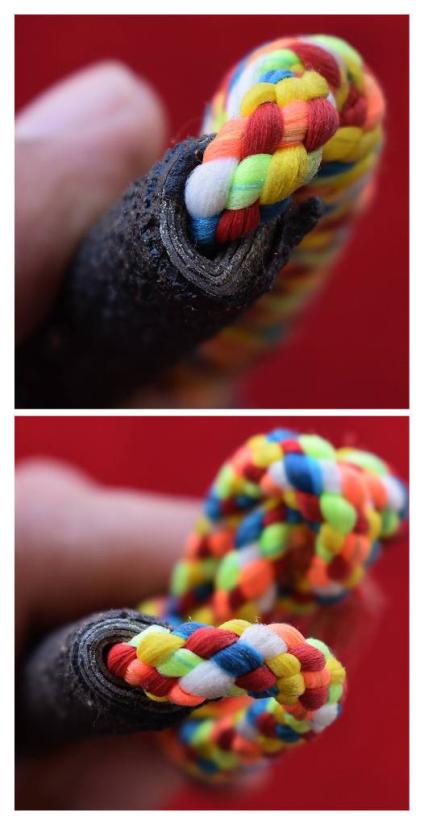 ( 2 ) ตะกรุดถักเชือก ลงรัก ปิดทอง ร้อยเชือกเจ็ดสี ทำบุญมาจำชื่อวัดที่สร้างไม่ได้ สภาพพระตามรูปที่ลงทุกประการ (ขนาดยาวประมาณ 5 นิ้ว) |