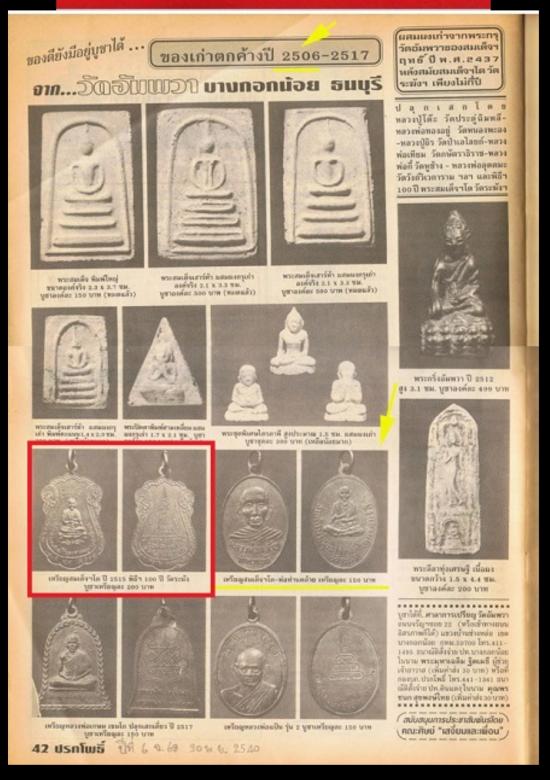 เหรียญ 100 ปี สมด็จโตพิมพ์เสมา ปี 15 วัดอัมพวา บางกอกน้อย (พิธี 100 ปี วัดระฆัง) สวยเดิมไม่ผ่านการใช้
