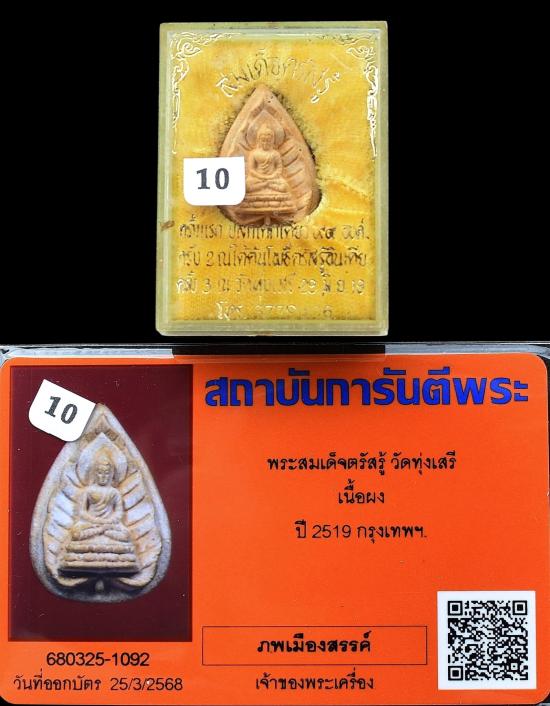 ( 10 ) พระสมเด็จตรัสรู้ วัดทุ่งเสรี เนื้อผงพุทธคุณ ปี 2519 หลวงปู่โต๊ะ , อ.ชุม ไชยคีรี และ พระเกจิรวมปลุกเสก มีกล่อง + บัตรรับรองพระแท้การันตีพระ สภาพพระตามรูปที่ลงทุกประการ