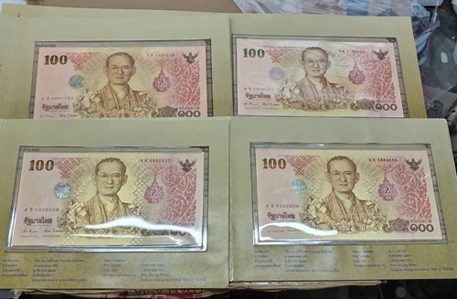 ธนบัตร 100บาท ที่ระลึก 84พรรษา รัชกาลที่9+ปก จำนวน 4 ใบ สภาพตามรูป |