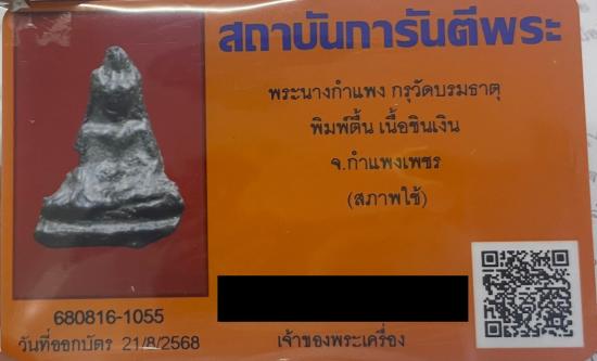 พระนางกำแพง พิมพ์ตื้น เนื้อชินเงิน กรุวัดบรมธาตุ จ.กำแพงเพชร + บัตร G-Pra
