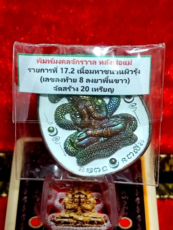 พิมพ์มงคลจักรวาล หลังพ่อแม่ เนื้อมหาชนวนผิวรุ้ง ลงยาพื้นขาว