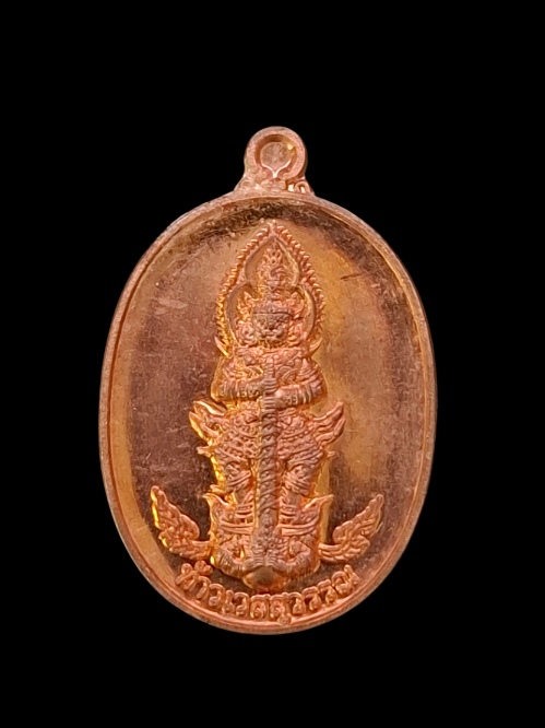 เหรียญเม็ดแตง ท้าวเวสสุวรรณยันต์สวน หลวงปู่แผ้ว วัดรางหมัน เนื้อทองแดง ปี 63 |