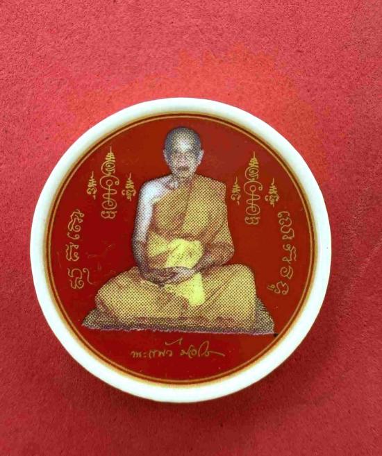 หลวงปู่แผ้ว เนื้อกระเบื้องเบญจรงค์ สีแดง ขนาด 3.5 ซม. วัดกำแพงเสน จ.นครปฐม |
