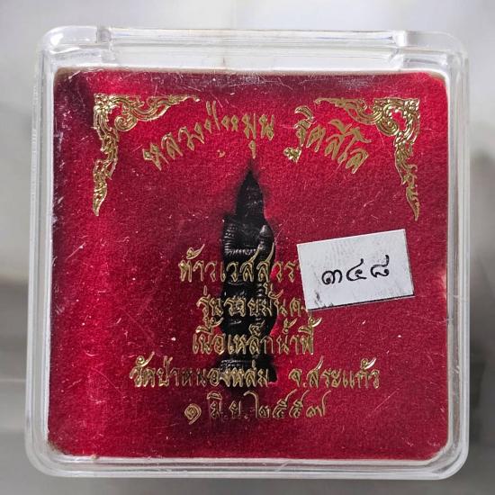 ท้าวเวสสุวรรณเหล็กน้ำพี้พร้อมกล่อง หลวงปู่หมุน "รุ่นรวยมั่นคง"2557 วัดป่าหนองหล่ม หรือเรียกท้าวเวสสุวรรณหลวงปู่หมุน เนื้อเหล็กน้ำพี้รุ่น2 หมายเลข 348 นิยม เคาะเดียว